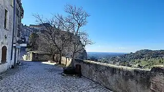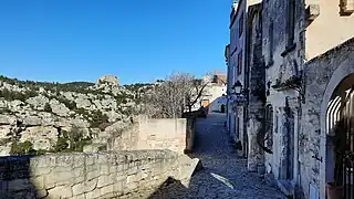 La commune est dominée par une vaste forteresse, le Château des Baux, aujourd'hui en ruines, ouvrant une large vue sur les plaines du sud, vers Arles et la Camargue proche.