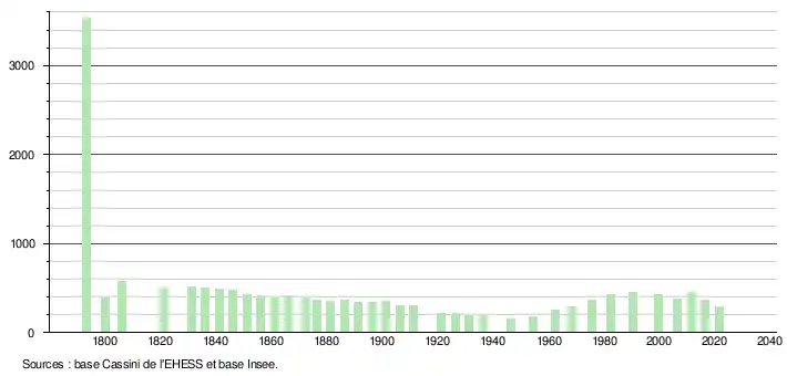 289 hab. (2021 en diminution de 26,09 % par rapport à 2015)