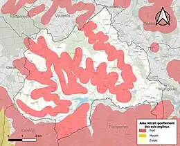Les mouvements de terrains susceptibles de se produire sur la commune sont des tassements différentiels[17]. Le retrait-gonflement des sols argileux est susceptible d'engendrer des dommages importants aux bâtiments en cas d’alternance de périodes de sécheresse et de pluie[18]. 50,7 % de la superficie communale est en aléa moyen ou fort (54,9 % au niveau départemental et 48,5 % au niveau national)[19]. Depuis le , en application de la loi ELAN, différentes contraintes s'imposent aux vendeurs, maîtres d'ouvrages ou constructeurs de biens situés dans une zone classée en aléa moyen ou fort[Note 2],[20].