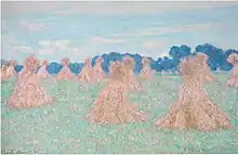 Le sujet est près de la propriété du peintre, dans la plaine des Ajoux située entre Giverny et la Seine[2]. Le tableau ne montrant aucune ombre projetée par les meulettes, le moment représenté se situe apparemment vers midi[1].