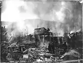 Picsou, qui risque de perdre sa concession s'il est arrêté, court trouver Goldie dans la ville en flammes pour lui demander de retirer sa plainte. Il en profite pour sauver Jules Écoutum (le frère de Elvire Écoutum, qui deviendra Grand-Mère Donald) et retrouve Goldie dans son saloon. Picsou à l'entrée du saloon et Goldie est restée sur l'estrade, malgré le feu qui ravage le saloon. Pourtant, aucun dialogue n'a lieu entre les deux personnages car aucun des deux n'ose engager la conversation. Goldie décide alors de faire semblant de d'évanouir sous l'effet des flammes, ce qui pousse Picsou à courir vers elle pour tenter de la sauver. Mais des pompiers essayent d'éteindre le feu du saloon avec un tuyau gelé qui envoie un glaçon qui frappe Picsou à la tête et l'assomme. Goldie s'en aperçoit et traîne Picsou en dehors du saloon puis se met dans ses bras pour faire croire qu'il l'a sauvée.