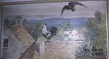 Cette fable a pour source l'apologue d'Ésope "Les deux coqs et l'aigle".