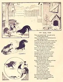 Les Deux Coqs est la douzième fable du livre VII de Jean de La Fontaine situé dans le second recueil des Fables de La Fontaine, édité pour la première fois en 1678. Cette fable est composée de 32 vers relativement courts ; structure traditionnelle de l’apologue : récit (v. 1-28) suivi d’une morale (v. 29-32).