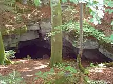 Cette grotte dont l’entrée est couverte d’éboulis, n’est guère habitable mais elle a servi à plusieurs reprises de refuge à la population pendant les guerres et les invasions (Suédois, Suisses, etc.) et pendant la Révolution où les prêtres immigrés venaient en cachette rencontrer leurs fidèles et y dire la messe. Au siècle dernier, on pouvait encore deviner certains vestiges des travaux effectués par les habitants pour masquer l’entrée et ainsi échapper aux soldats partis à leur recherche. Elle sert aussi de refuge à quelques blaireaux et renards qui y ont élu domicile.