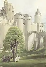- Joyeuse Garde : C'est un château du royaume de Logres initialement appelé la Douloureuse Garde, et rebaptisé lorsque Lancelot met fin aux enchantements. C'est dans ce château que se réfugient Geneviève et Lancelot après qu'ils ont été dénoncés au Roi Arthur.