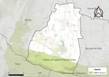 L'occupation des sols de la commune, telle qu'elle ressort de la base de données européenne d’occupation biophysique des sols Corine Land Cover (CLC), est marquée par l'importance des territoires agricoles (72,5 % en 2018), une proportion identique à celle de 1990 (72,5 %). La répartition détaillée en 2018 est la suivante : zones agricoles hétérogènes (62,5 %), forêts (17,4 %), milieux à végétation arbustive et/ou herbacée (10,1 %), terres arables (10 %)[11]. L'évolution de l’occupation des sols de la commune et de ses infrastructures peut être observée sur les différentes représentations cartographiques du territoire : la carte de Cassini (XVIIIe siècle), la carte d'état-major (1820-1866) et les cartes ou photos aériennes de l'IGN pour la période actuelle (1950 à aujourd'hui)[Carte 1].