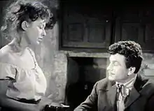 Claudine Dupuis (la paysanne) et Henri Vidal (Antonin) dans une scène du 5e tableau La Gourmandise.