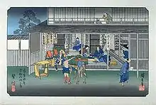 | no | Estampe | Nom français | Auteur[29] | Nom japonais | Transcription | Localisation actuelle de l'étape (ville / village / quartier) |
