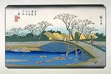 Aussi est-ce avec sa série d'estampes des Cinquante-trois Stations du Tōkaidō que Hiroshige va connaître la célébrité, lorsqu'il les publie chez Hōeidō, vraisemblablement sous forme de « recueil d'images » (gashu), paru en « feuilleton » entre 1832 et 1834[16].
