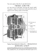 Chaque Lichttonorgel est équipé d'un ou plusieurs groupes de douze générateurs sonores (les tone-units). Il faut en effet un générateur indépendant pour produire chacune des douze notes de la gamme chromatique tempérée (de Do à Si) ainsi que les octaves de chacune de ces notes. Chaque générateur est constitué de deux disques de verre tournant à vitesse constante. Les 18 pistes optiques sont lues par 18 cellules photoélectriques. Les douze générateurs sont identiques, ils ne diffèrent que par la vitesse de rotation des plateaux, afin de générer les douze fréquences des douze notes.