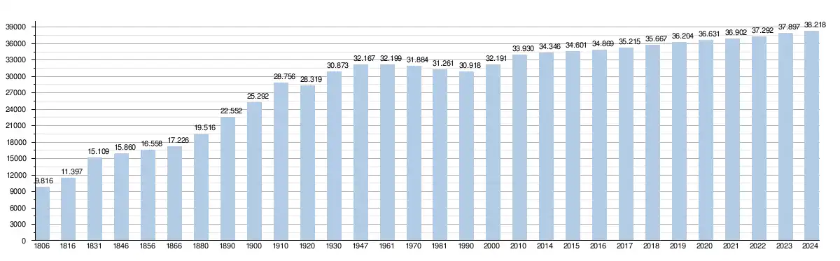 - Source : DGS - Remarque: 1806 jusqu'à 1981=recensement; depuis 1990=nombre d'habitants chaque 1er janvier[8]