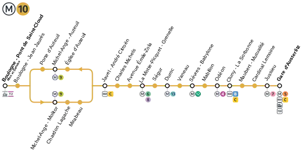 | Terminus | Boulogne - Pont de Saint-Cloud Gare d'Austerlitz |