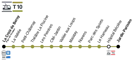 | Terminus | Antony - La Croix de Berny Clamart - Jardin Parisien |