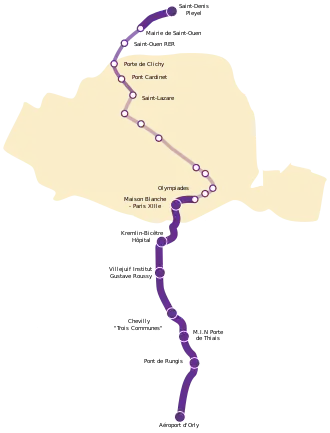 Le 14 décembre 2020, elle est prolongée pour la première fois en banlieue parisienne jusqu'à Mairie de Saint-Ouen. Elle sera à nouveau prolongée en 2024, vers Saint-Denis au nord et vers l'aéroport d'Orly au sud, dans le cadre du projet de Grand Paris Express.