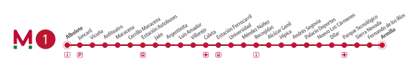 La ligne compte 26 stations et parcourt 16 km. Trois stations se situent en souterrain — à 12 m de profondeur sous l'avenue du chemin de ronde (Camino de Ronda) et l'avenue d'Amérique (Avenide de América) — et trois kilomètres de voies se trouvent enterrées. Les rails sont à écartement normal. À l'exception d'un tronçon de 500 m, l'intégralité de la ligne est à double voie. Sur quatre secteurs, les rames circulent sans ligne aérienne de contact[4].