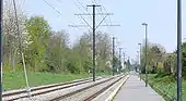Le terminus de la ligne à Université : l'arrière gare comprend une simple voie de tiroir et une voie de stationnement, suffisant pour cette ligne dont la fréquence est assez basse.