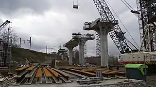 La construction de la ligne a débuté à l'automne 2007 par la partie tangentielle à la E19. La ligne est ouverte le 7 juin 2012 et entre en service le 10 juin 2012[1].