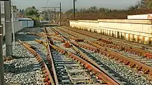 À gauche, les voies de passage T3 / T4 / Rhônexpress. À droite, les voies destinées à la régulation des lignes, où peuvent stationner des rames en attente.