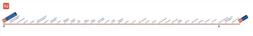 La ligne 92 du tram de Bruxelles part de Schaerbeek Gare. Les trams descendent l’avenue Princesse Élisabeth et croisent la ligne 7 et arrivent à la place Eugène Verboekhoven en correspondance avec la ligne 55. Désormais seule, elle traverse l’avenue Maréchal Foch, la chaussée de Haecht et la place de la Reine (Sainte-Marie) où la ligne 93 la rejoint.