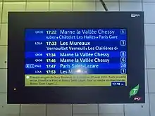 | Terminus | Saint-Germain-en-Laye Boissy-Saint-Léger Cergy-le-Haut Marne-la-Vallée - Chessy Poissy |