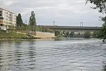 Le , la machine atteint la proximité du pont de Neuilly, après avoir foré un tunnel de 2 752 mètres. Parallèlement, un canal est construit dans l'île de Neuilly, sur lequel sont assemblés sept caissons en béton précontraint. Ils sont amenés à leur emplacement définitif par flottaison puis foncés un à un dans le cours de la Seine, après déroctage à l'explosif de la couche de calcaire, située sous le lit du fleuve. Le premier est mis en place le , le dernier en [36].