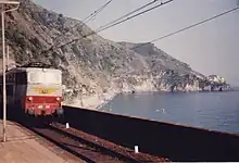 À partir de Monterosso, la ligne traverse la région des Cinque Terre, avec de longs tunnels et quelques points de vue sur la Mer Ligure. Entre les villages, d'abruptes falaises ont rendu ce tronçon célèbre.