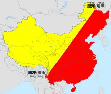 - Ligne Heihe – Tengchong, divisant la Chine en deux parties orientale et occidentale