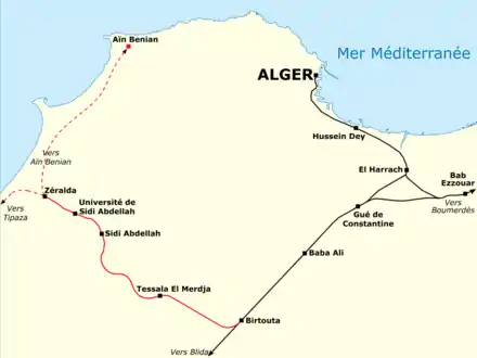 La ligne de Zéralda à Aïn Bénian, via Staoueli et Chéraga[9] aura une longueur de 15 km[11].