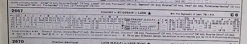 | Villes desservies | Chauny, Autreville, Sinceny, Barisis-aux-Bois, Saint-Gobain | |||||||||||||||||||||||||||||||||||||||||||||||||||||||||||||||||||||||||||||||||||||||||||||||||||||||||||||||||||||||||||||||||||||||