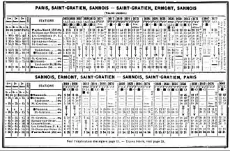 Au-delà de la proche banlieue, la ligne traverse des zones relativement peu denses, et le trafic voyageurs reste en conséquence modéré. La desserte, irrégulière, comporte des intervalles de trente minutes à deux heures durant la journée ; elle est assurée par des locomotives de type 222 T ou 232 T tractant des voitures ordinaires ou articulées pour trains-tramways. Les rames effectuent au nord la boucle terminale via le raccordement de Saint-Gratien, leur évitant un retournement en gare d'Ermont - Eaubonne avec remise en tête de la machine. L'utilisation de ce raccordement cesse aux alentours de 1925. Les raccordements en triangle établis en 1908 entre la ligne et la Grande Ceinture sont quant à eux démontés en [5].