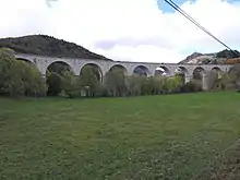 L'ancienne gare de La Faurie (Hautes-Alpes) vue depuis l'entrée nord de la ligne.