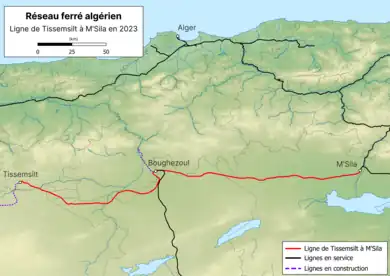 La ligne de Tissemsilt à M'Sila a été inaugurée le [1]. Sa mise en service est une étape majeure de l'achèvement de la « rocade ferroviaire des Hauts Plateaux ». Cette rocade est constituée d'un ensemble de lignes d'une longueur totale de 1 160 km qui, lorsqu'elle sera achevée, reliera Moulay Slissen, à l'ouest, à Tébessa, à l'est de l'Algérie, en desservant les villes de Saïda, Tiaret, Tissemsilt, M'Sila, Barika, Batna, Aïn M'lila et Oum El Bouaghi[2],[3].