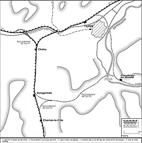- L'un de ces deux embranchements fut ultérieurement utilisé à partir de 1951 pour la construction de la base aérienne de Toul.