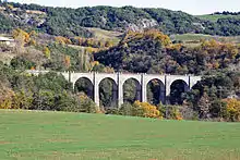 Le franchissement d'une grande quantité de cours d'eau a entraîné la construction de nombreux viaducs dont aucun n'a de dimensions spectaculaires. Les viaducs les plus importants se situent sur la partie déviée. Le plus grand d'entre eux, le viaduc du Riou-Bourdou, long de 223 m, comporte quatre travées métalliques dont deux centrales de 63,60 m et deux de rives de 47,70 m de longueur.