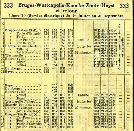| Tableaux horaires[note 1] | 333 (1931) | |