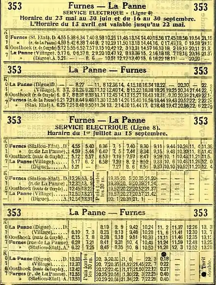 Tableaux[note 1] : 353 (1931)[2], n° de tableau partagé avec la ligne 353 Furnes - Poperinge.
