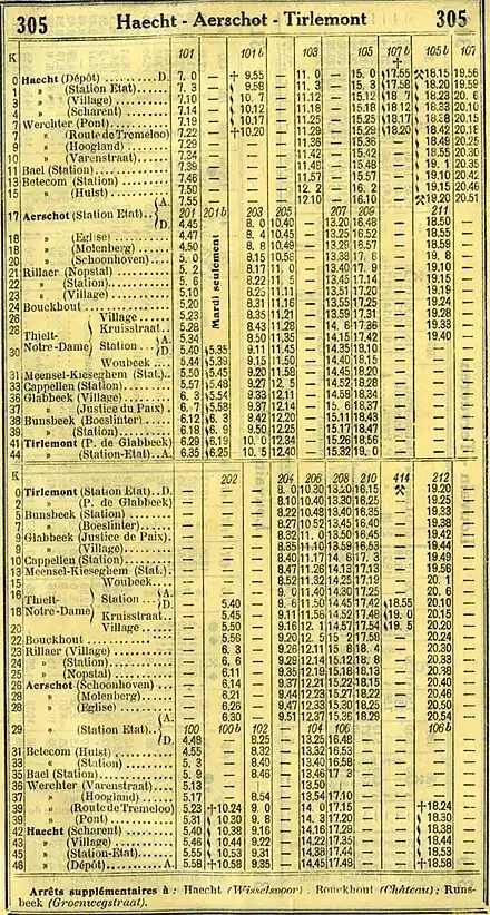 | Tableaux horaires[note 1] | 305 (1931) | |