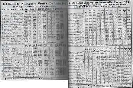 Tableaux[note 1] : 348 (1931)[6], n° de tableau partagé par les lignes 7 Furnes - Coxyde, 9 Furnes - Ostdunkerque, 21 Adinkerque - La Panne et 348 Ostende - Furnes.