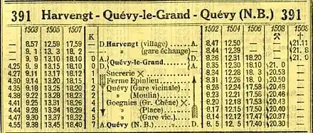 Vers , elle est fusionnée avec la ligne 21A Aulnois Quévy-Nord-Belge - Eugies Dépôt[3].