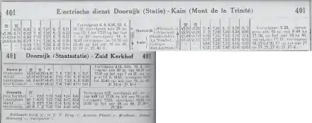 - 401B en , numéro partagé avec la ligne T (401A) Tournai Station-État - Toufflers Douane[4].