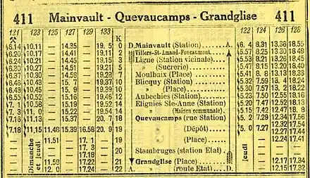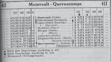- 411/1 en , numéro partagé avec la ligne 411/2 Quiévrain Station-État - Montrœul-sur-Haine Gare vicinale[4].