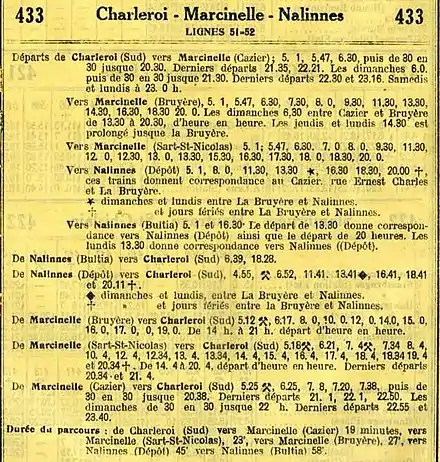 | Tableaux horaires[note 1] | 1931 433 ; 1958 880 | |
