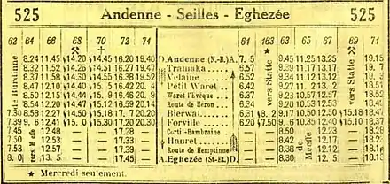 - Indicateur officiel : été 1958, Société nationale des chemins de fer belges (SNCB), du au (lire en ligne sur le Grenier Ferroviaire)