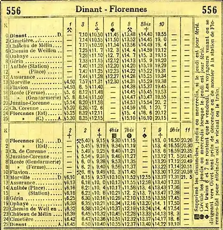| Tableaux horaires[note 1] | 556 (1931) | |