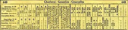 - 440 (1931), tableau partagé avec la ligne 60 Charleroi - Gosselies, numéro également partagé avec la ligne 65/66 (boucle de Jumet).