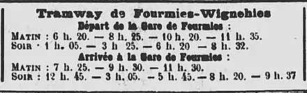 - « [Tramway de Fourmies à Wignehies] », Journal de Fourmies, no 568, , p. 2 (lire en ligne)