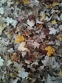 Macromolécule très stable, la lignine n'est décomposée de manière significative que par des champignons saprotrophes à haut pouvoir de lyse fongique, principalement des basidiomycètes (agents de « pourriture blanche » de la litière, agents de pourriture du bois qui ont un équipement enzymatique spécifique : cellulases et hémicellulases, peroxydases et polyphénol-oxydases extracellulaires et intracellulaires attaquant les fragments de cellulose, hémicellulose et lignine importés dans la cellule fongique) responsables de la lyse de ces composés et de l'humification[27].