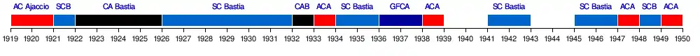 - De 1919 à 1939 : Champion de la Division d'Honneur de Corse.