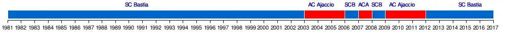 | Saison | Régional 1 | Régional 2 | Régional 3 | Régional 4 | Coupe de Corse | Régional 1 Féminine |