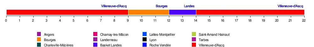 | Basket Landes | 10 | 4 | 3 | 2 | 3 | 3 | 3 | 3 | 4 | 3 | 3 | 2 | 1 | 1 | 3 | 3 | 3 | 3 | 3 | 3 | 3 | 3 | 2 | 21 | 1 |
